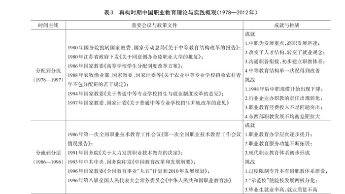 (四)再構(gòu)時(shí)期中國(guó)職業(yè)教育理論與實(shí)踐概觀(1978—2012 年) (表 3)