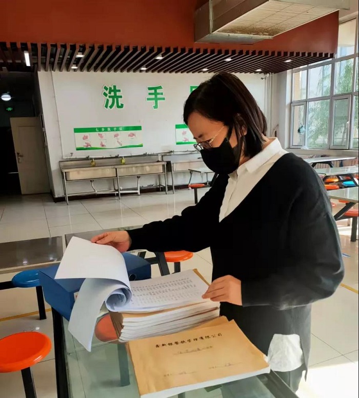 在學校建“方艙”為師生接種新冠肺炎疫苗的時候,在三輪核酸檢測的時候,她幾乎都是徹夜不眠做著各種準備。大到聯(lián)系醫(yī)護人員進校,小到一個棉簽的購買,接種、核酸師生組織、醫(yī)療垃圾轉(zhuǎn)運、隔離師生安置等等,諸項大小適宜,都離不開于敬怡老師的身影。10月26日,學校第二輪核酸檢測開始,15名醫(yī)護人員在做完師生核酸取樣后需要在校隔離,直至第三輪核酸檢測結(jié)束,由于老師全面負責他們的安置事宜。而此時,于老師因為勞累感冒發(fā)燒,自己也開始隔離觀測。她忍著不舒服,堅持安排完所有工作后才休息。