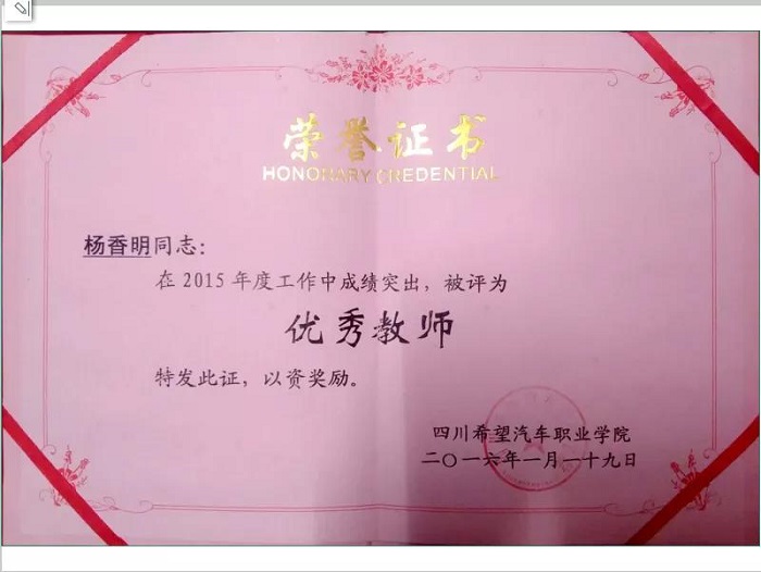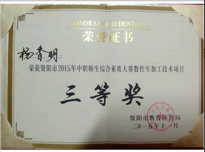楊老師在參加學(xué)生管理的同時積極參與教學(xué)研究和各類校內(nèi)外活動,他曾于2015年擔(dān)任成都經(jīng)濟區(qū)第一屆職業(yè)技能大賽數(shù)控車工裁判員,并獲得資陽市2015年中職師生綜合素質(zhì)大賽數(shù)控車加工技術(shù)項目三等獎、榮獲學(xué)院優(yōu)秀教師等稱號,先后發(fā)表《工學(xué)結(jié)合人才培養(yǎng)模式下的技工院校教學(xué)體系研究》、《傳統(tǒng)課堂教學(xué)與網(wǎng)絡(luò)教學(xué)的比較研究》、《現(xiàn)代機械制造工藝與加密加工技術(shù)》、《鉗工工藝在汽車維修當(dāng)中的運用與探討》等多篇論文,教學(xué)成果得到轉(zhuǎn)化,為學(xué)生們樹立了榜樣。